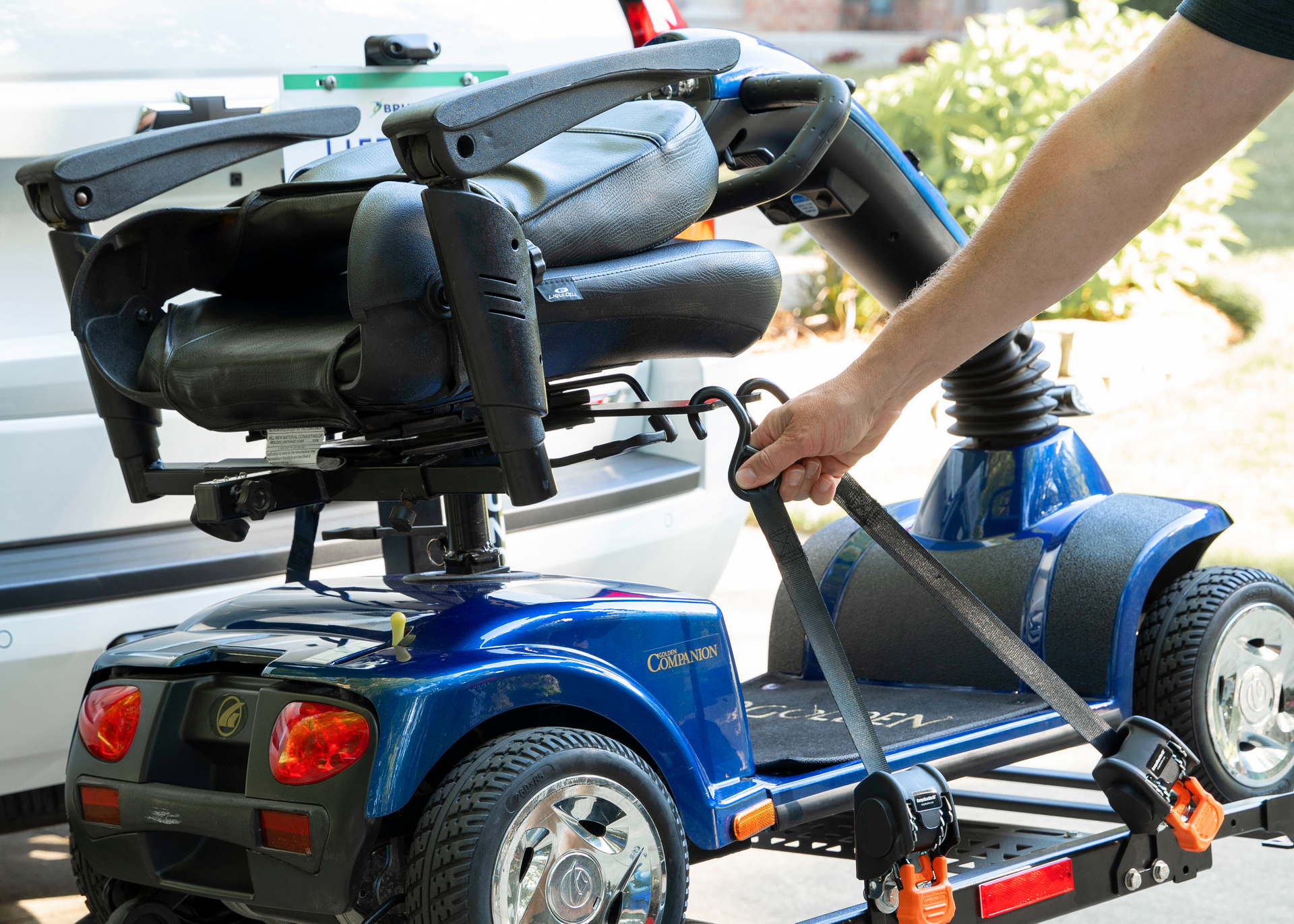 - Bruno Out-Sider® (ASL-275): A fully powered, automatic lift that secures your scooter or powerchair to the back of your vehicle. Simple to operate and great for larger mobility devices.